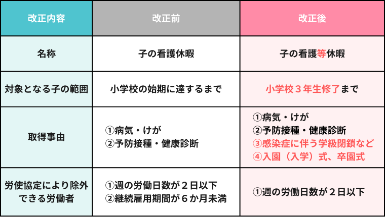 子の看護等休暇はどう変わった?