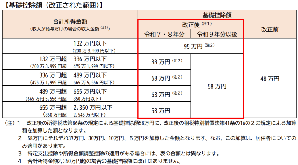 2025年度税制改正では、所得税における「基礎控除」や「給与所得控除」の見直しが行われました。