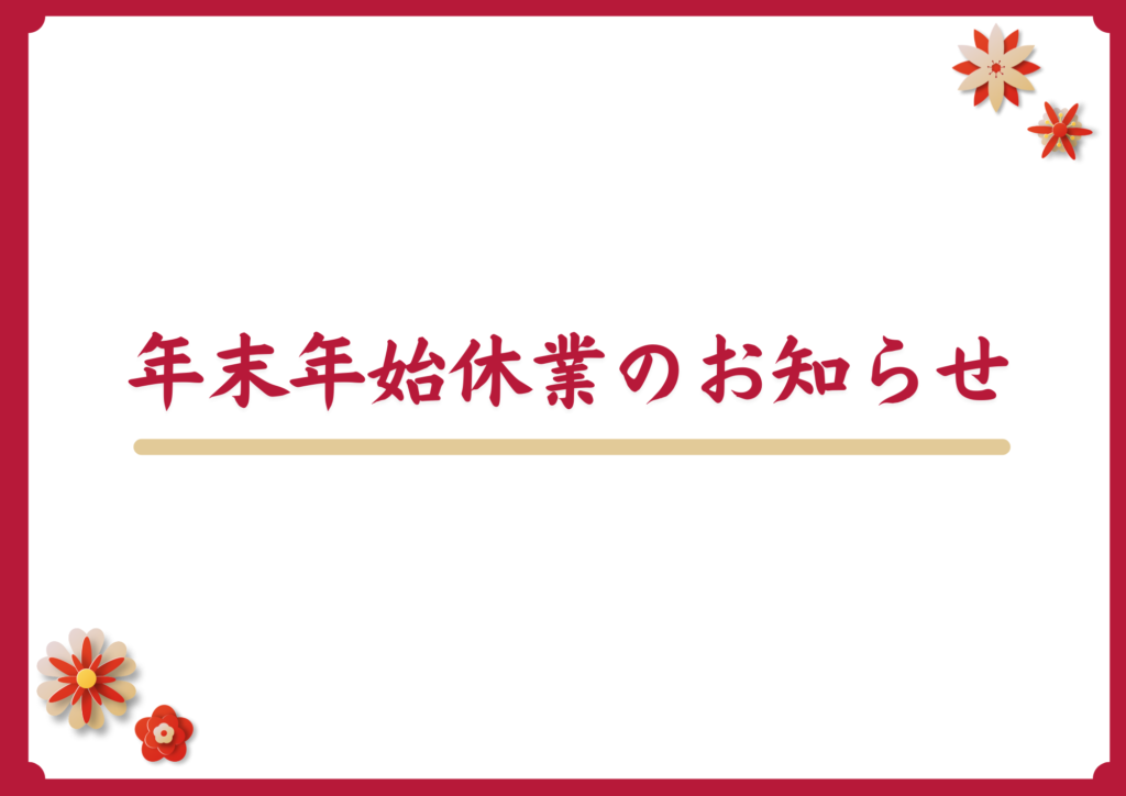 勝手ながら、2025年12月27日(土)から2026年1月4日(日)の期間を、年末年始休業とさせていただきます。